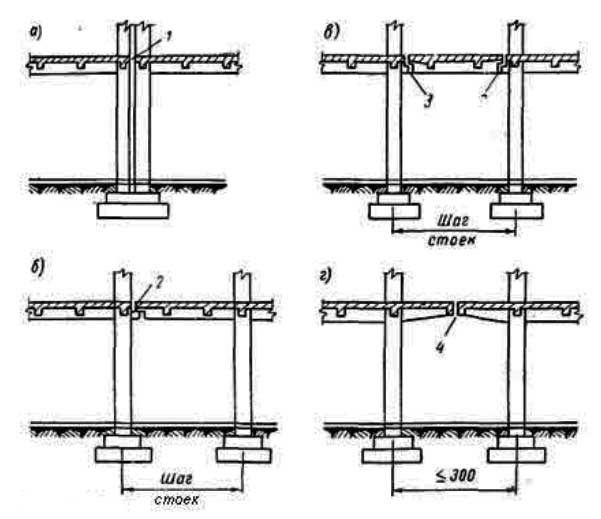 При возведении зданий в один этаж из каркасного армированного бетона расстояние от одного до другого шва разрешается увеличивать на 20% относительно данных таблицы 1. Также табличные данные применимы при создании в каркасных сооружениях вертикальных связей в середине отдельного блока. Размещение подобных связей по краям такого блока приближает работу его каркаса (при воздействии типовых деформаций) к аналогичному цельному сооружению.