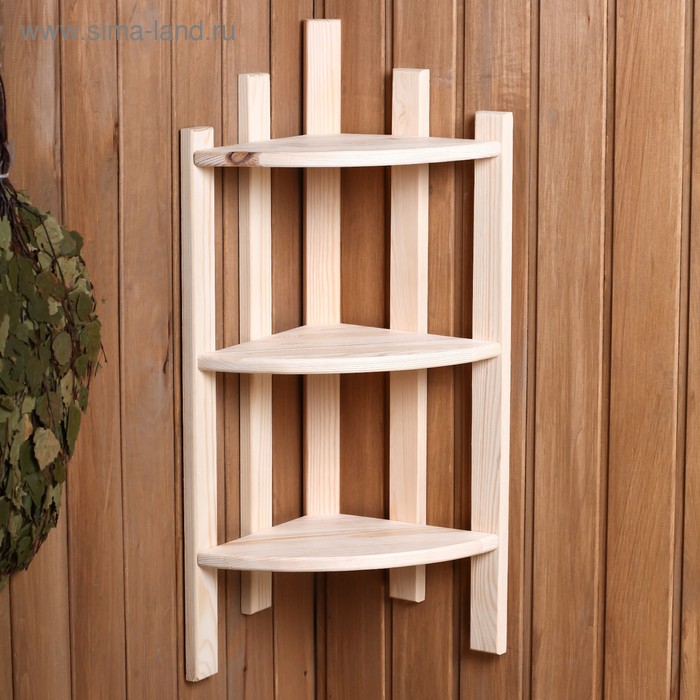 В угловых конструкциях полки обустраивают таким образом, чтобы верхние и нижние детали примыкали к одной перегородке, а промежуточная составляющая обустраивалась на смежной стене.