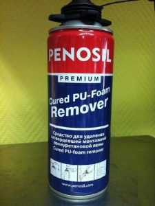 Приобретая пену, желательно взять специальный растворитель того же изготовителя. Чаще всего они выпускаются в форме аэрозоля и хорошо справляются со свежими следами, но практически бессильны перед засохшими.