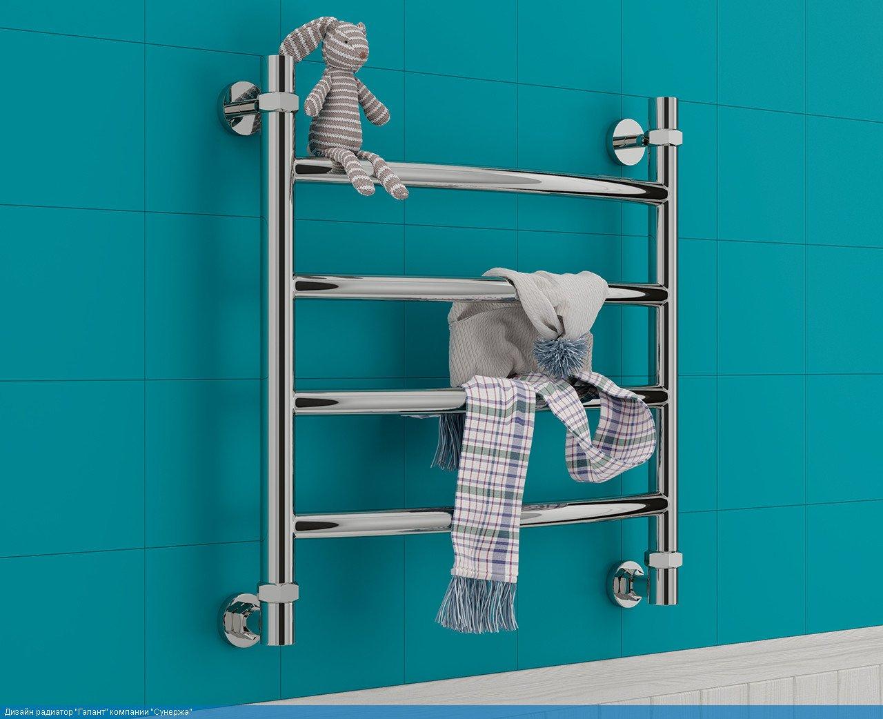 - Сушит белье. Полотенцесушитель для ванной имеет довольно большую поверхность и температуру теплоносителя, чтобы достаточно быстро высушить небольшое количество белья. Эта функция прибора особенно полезна для семей с маленькими детьми и тех, кто не имеет балкона.