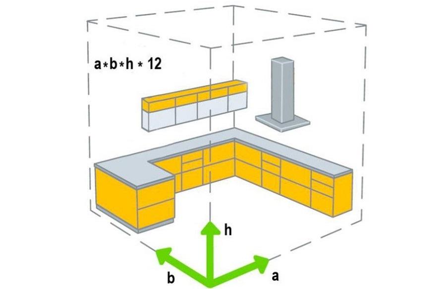 Производительность вытяжки для кухни — общепринятое выражение для расчета (куб. м/ч):